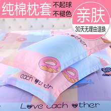 全棉单人枕套纯棉一个 夏天粉色枕头套48 74cm简约单个人夏季枕用