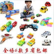 6款包邮发条上链拉线回力惯性玩具工程汽车模型宝宝学爬行玩具
