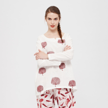 DECOSTER/德诗全棉绣小树花宽松无领上衣文艺气质上衣女8F430819
