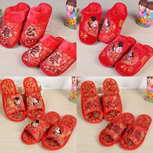 创意喜庆拖鞋结婚用品婚庆道具 情侣卡通公仔款老公老婆红色拖鞋