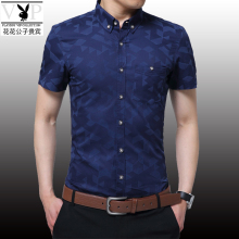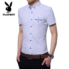 花花公子衬衫男短袖夏季男士青年商务休闲衬衫纯棉修身半袖白寸衫