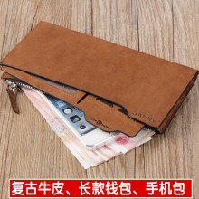 尊尼丹奴男头层牛皮钱包长款真皮拉链牛皮钱夹多卡位苹果6手机包