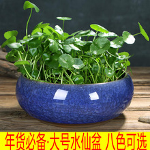 年货水仙盆冰裂八色水仙盆陶瓷无孔 铜钱草绿萝碗睡莲水培植物盆