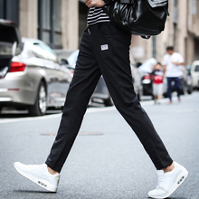 裤子男夏季2017束脚裤潮流韩版修身小脚百搭运动休闲黑色九分裤男
