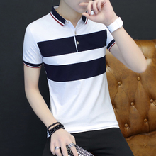 2017新款夏季男士短袖Polo衫青年韩版翻领版型t恤潮男装条纹汗衫