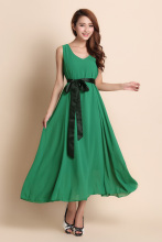 波西米亚连衣裙夏雪纺 沙滩裙显瘦中长裙无袖度假裙子包邮
