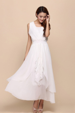 夏天女雪纺背心连衣裙 沙滩裙修身飘逸白色大码长