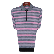 秋新款长袖t恤中老年男条纹打底衫翻领彩条体恤衫男装