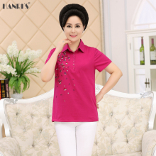 夏季新品短袖t恤中老年大码装水洗棉短袖t恤翻领体恤宽松夏款女装