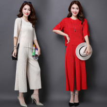 阔腿裤套装女2017春装新款冰丝针织套装胖mm气质时尚女装欧洲站潮