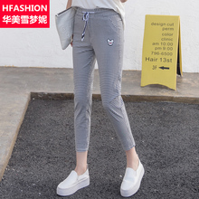 格子九分裤夏季新款韩版大码竖条纹学生小脚铅笔黑白修身休闲裤潮