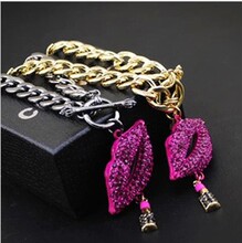 厂家饰品红唇嘴唇口红皇冠 装饰珍珠项链 配饰 手链手环 女