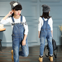 童装2017新款春装女童牛仔背带裤儿童长裤吊带裤连体裤中大童12岁