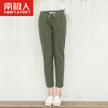 南极人2017新款 夏季薄款修身棉麻女裤 九分裤韩版松紧腰哈伦裤潮