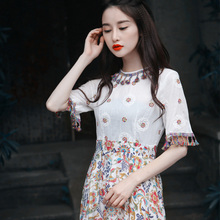 花间裳/长烟/原创仙气收腰显瘦 印花雪纺拼接网纱连衣裙 夏新款