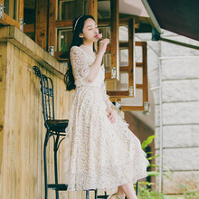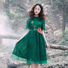 花间裳 原创复古立领绣花修身显瘦森女系蕾丝连衣裙秋装新款