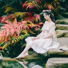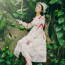 花间裳 爱丽丝 原创淑女修身显瘦蝴蝶结蕾丝雪纺连衣裙仙气质长裙