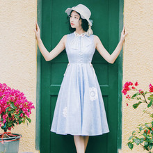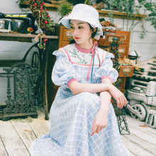 花间裳/花未眠/原创淑女格纹绣花无袖连衣裙收腰显瘦中长裙夏新款