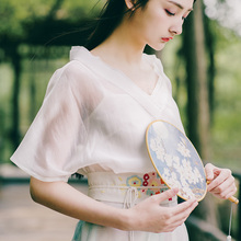 花间裳/南塘秋/原创改良汉服女纯色交领上衣汉元素雪纺衫防晒衫