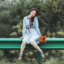 花间裳 郁瑾 原创小清新七分袖赫本风复古雪纺连衣裙秋季新款
