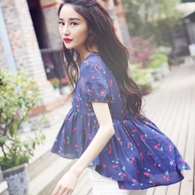 花间裳 侧耳倾听 原创小清新田园淑女宽松印花雪纺衫长袖衬衣新款