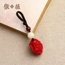 傲薇汽车钥匙扣原创手工雕刻朱砂吉象佛挂件手机包包挂件钥匙链