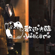 招财猫欢迎光临版 创意墙贴纸装饰店铺橱窗玻璃贴店面贴画 特价