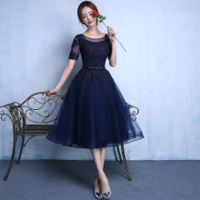 晚礼服2017新款春季中长款伴娘服姐妹裙礼服女短款中袖宴会连衣裙