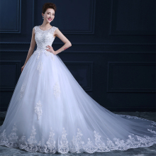 婚纱礼服新款2017春季时尚新娘一字肩齐地拖尾绑带大码女双肩