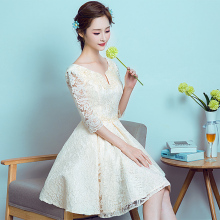 晚礼服2017新款春季蕾丝中袖伴娘服姐妹裙短款礼服女小礼服连衣裙