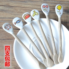 南北旺日式粗陶瓷咖啡搅拌棒手绘卡通可爱长柄搅拌勺猫咪小鱼到货