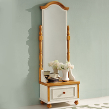 都市闲情 地中海穿衣镜全身镜木质落地镜带收纳储物柜子化妆镜A30