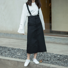 MARANT学院风肌理感高腰开衩背带裙宽松显瘦百搭中长款连衣裙女春