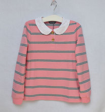 春秋新款粉色秋 女童纯棉翻领长袖T恤 120-160 出口韩国