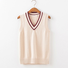 日系学院风JK制服背心 大码学生套头毛衣马甲 无袖V领针织衫纯棉