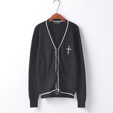 日系JK刺绣开衫 可爱少女 学院风制服毛衣 长袖V领针织衫外套