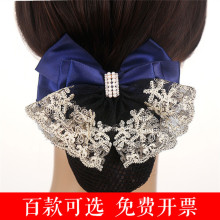 韩版高档商务蓝色蕾丝护士银行空姐职业头花网兜发饰发夹发网包邮