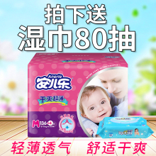 安儿乐纸尿裤M 干爽超薄透气婴儿尿不湿中码M136+4片 共M140片