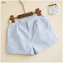 百搭女裤铁锚木扣竖条纹棉麻短裤休闲薄款外穿打底裤