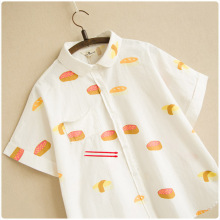 夏季新款日系创意寿司筷子宽松版纯棉衬衫女休闲学生衫萌系衣服潮