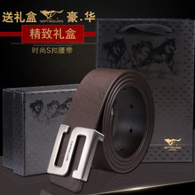 七匹狼男士皮带牛皮腰带字母S扣平滑扣休闲青年裤带男韩版潮男