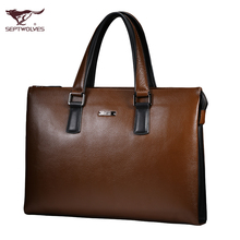 七匹狼男包手提包男横款真皮商务公文包男士牛皮包电脑大包斜挎包