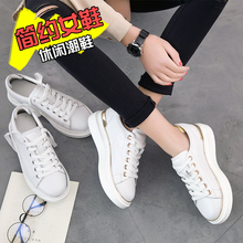 2017春新款麦昆小白鞋女真皮系带韩版松糕厚底休闲板鞋运动鞋女潮