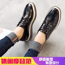 2017春新款韩版百搭漆皮小皮鞋厚底松糕系带单鞋女平底学院风女鞋