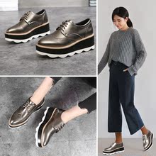 2016春款英伦复古松糕厚底布洛克单鞋女平底真皮鞋子系带休闲鞋潮