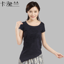 左凡圣迪奥2016女装夏款勾花镂空刺绣 棉麻短袖 女T恤3280197