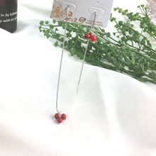 925纯银耳线 女长款流苏耳环红色日韩时尚个性气质防过敏学生饰品