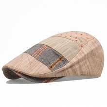 鸭舌帽子 秋季天薄款透气 贝雷帽男女士民族风格纹纯棉韩版潮帽