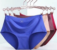 冰丝一片式无痕女士内裤女莫代尔纯棉内档中腰性感大码纯色三角裤