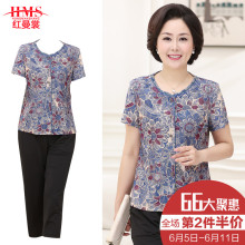 中老年女装夏装套装60-70岁奶奶装两件套短袖衬衫裤子妈妈装夏季